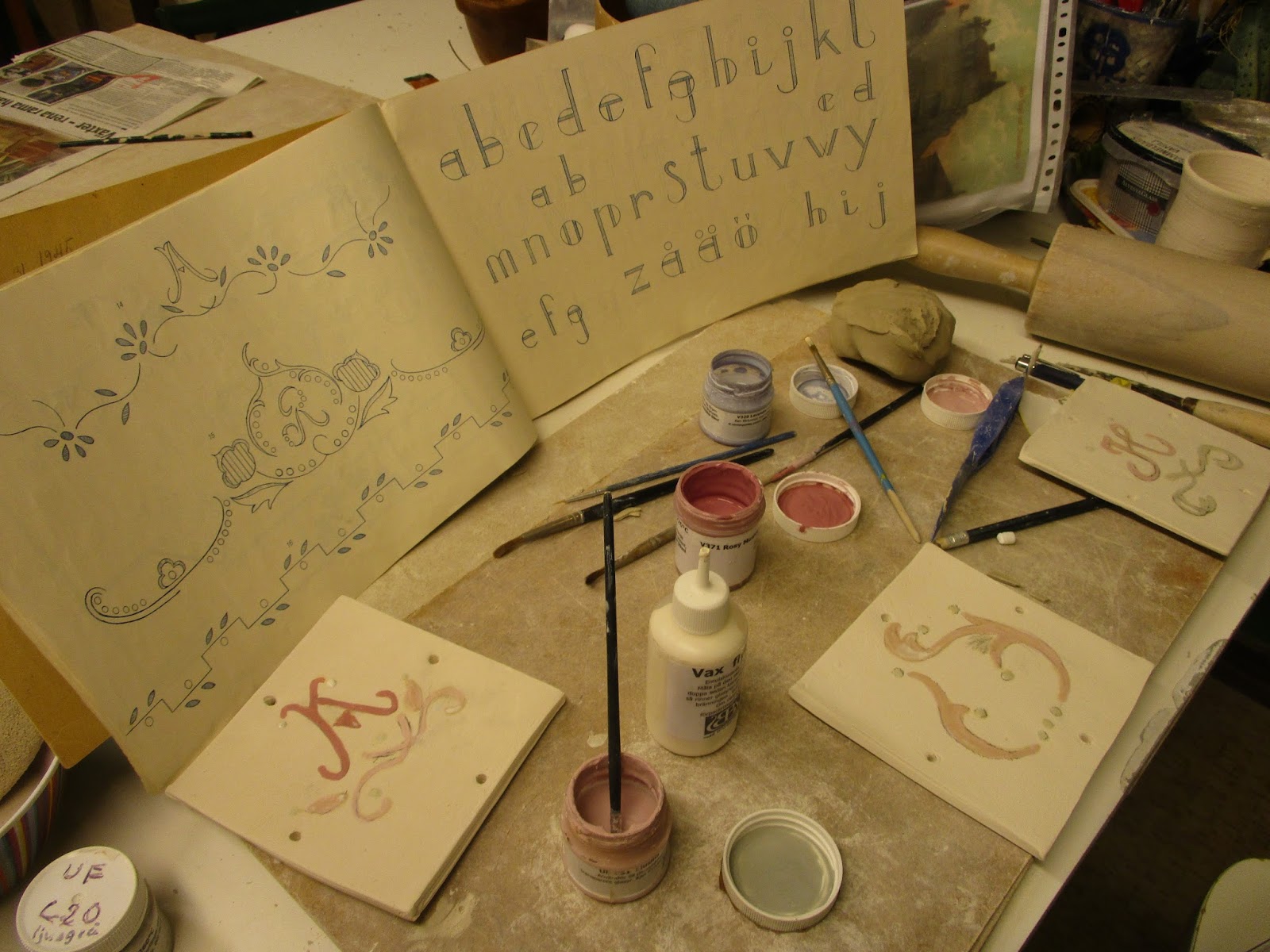 Det är verkligen som terapi att knåda lera, välja glasyrfärger och inte tänka på någonting alls.
