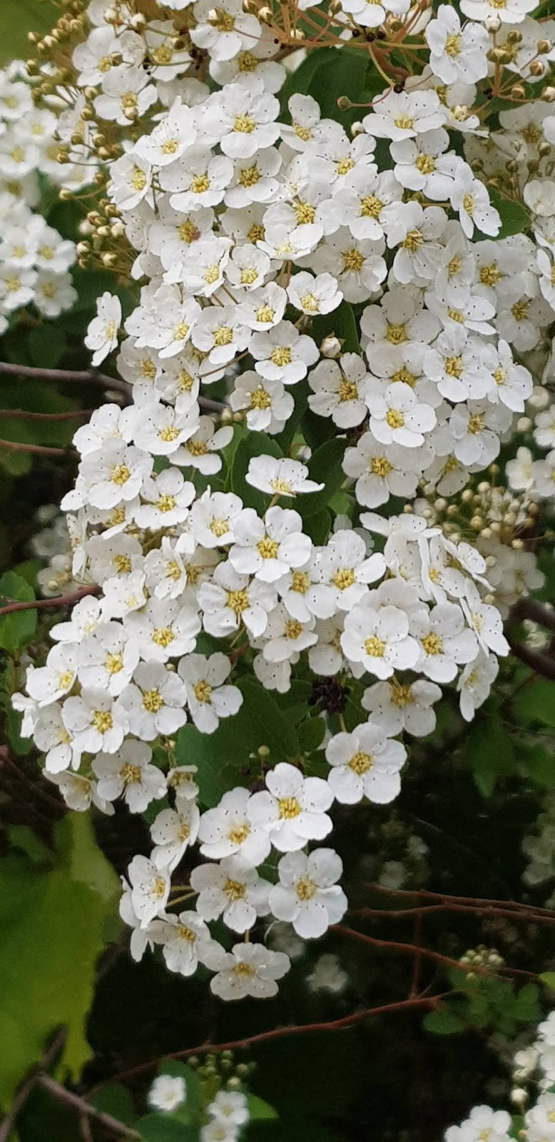 Spireabuskarna som omringar tomten på alla fyra sidor är helt underbara.